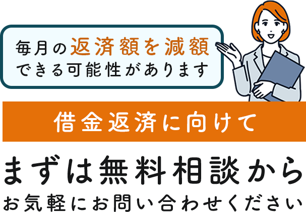 - 借金の相談は何度でも無料任意整理、法的手続きなどじっくりと検討できます